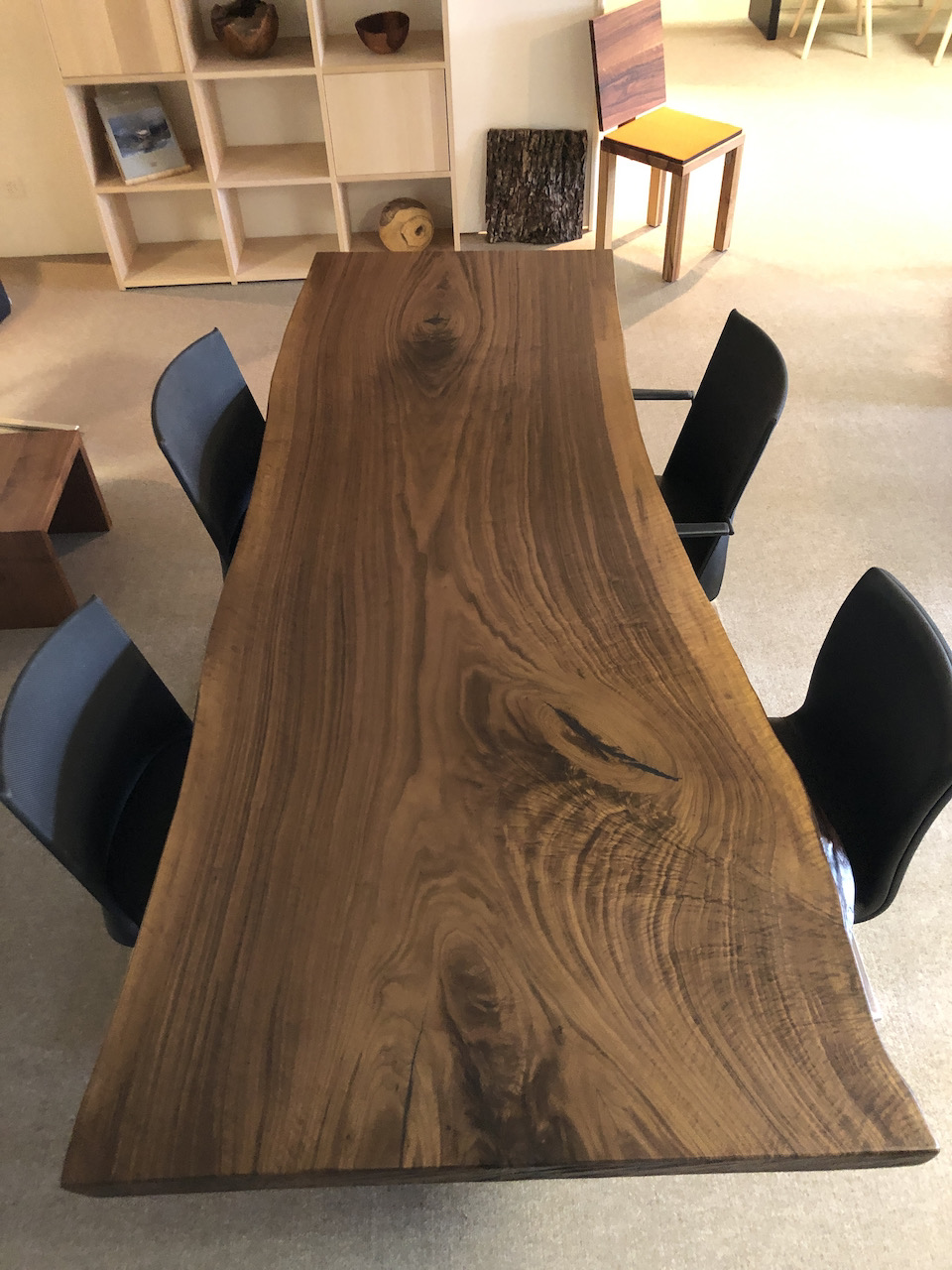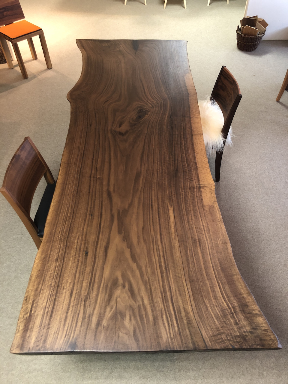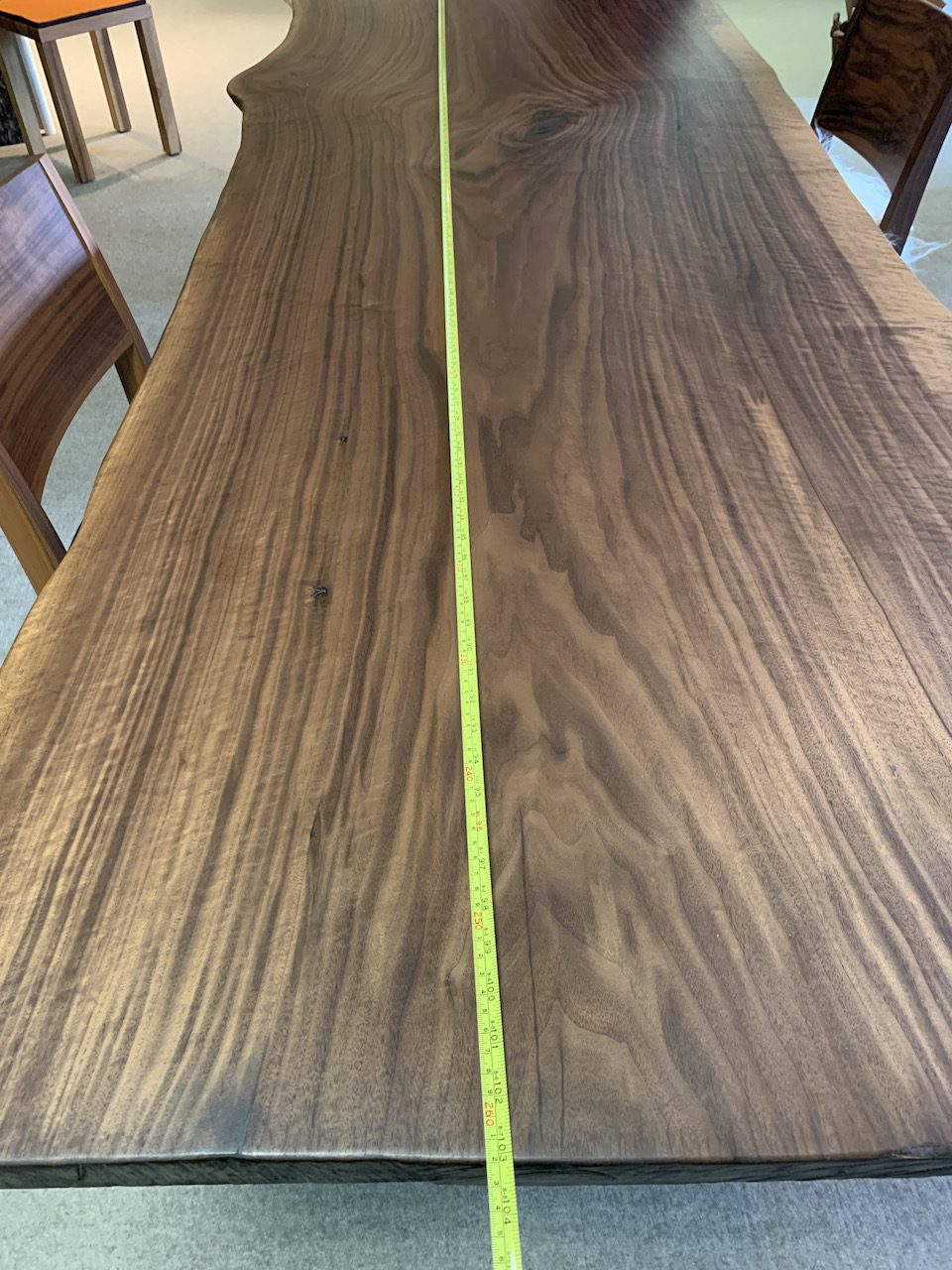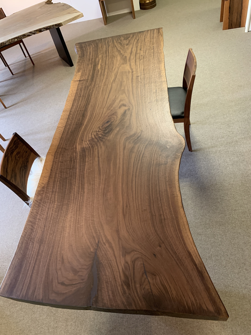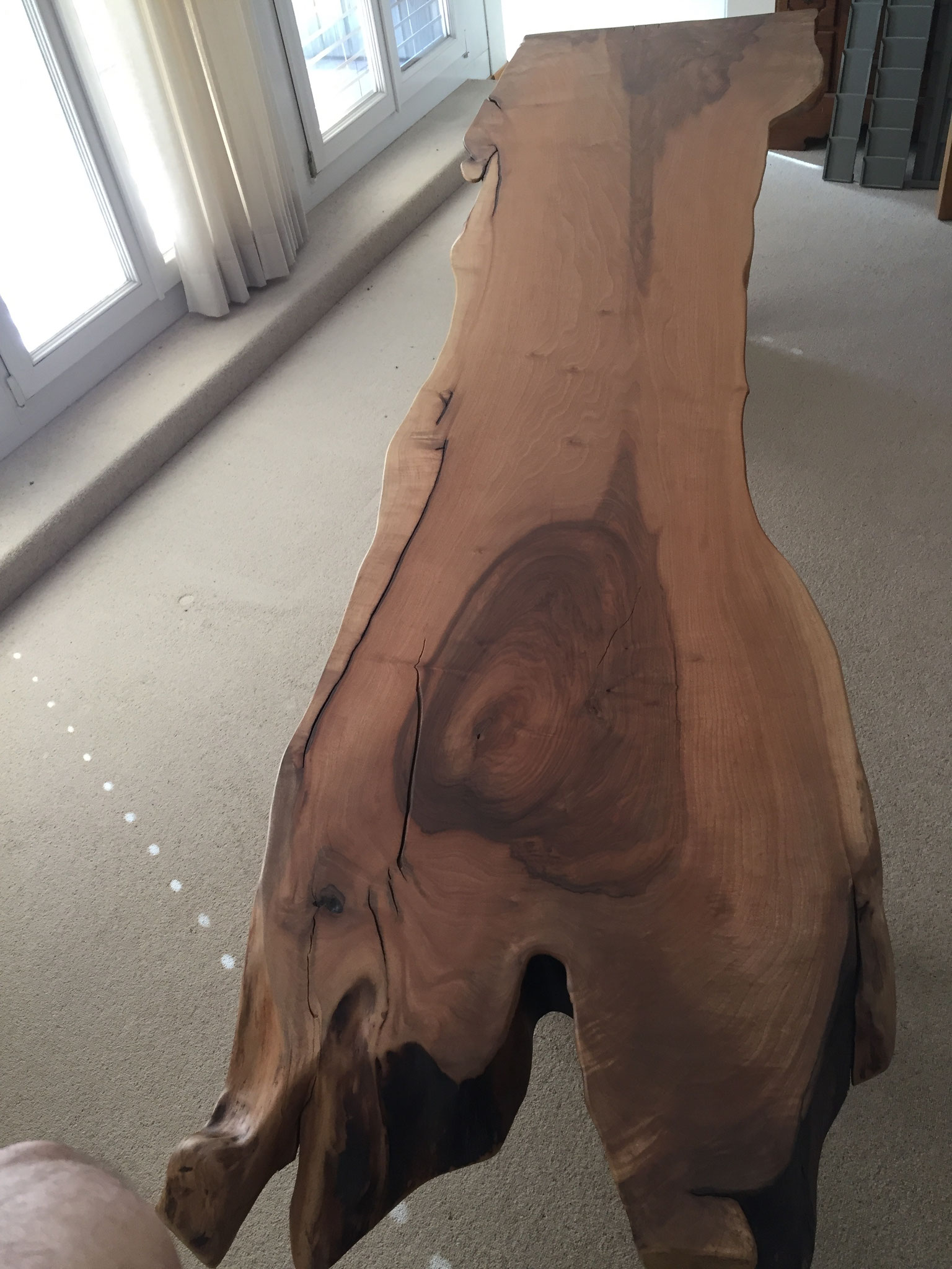 Riesenbaum Tisch, Schwarznussbaum. Länge 243cm, Breite 78-98cm. Verkauft
