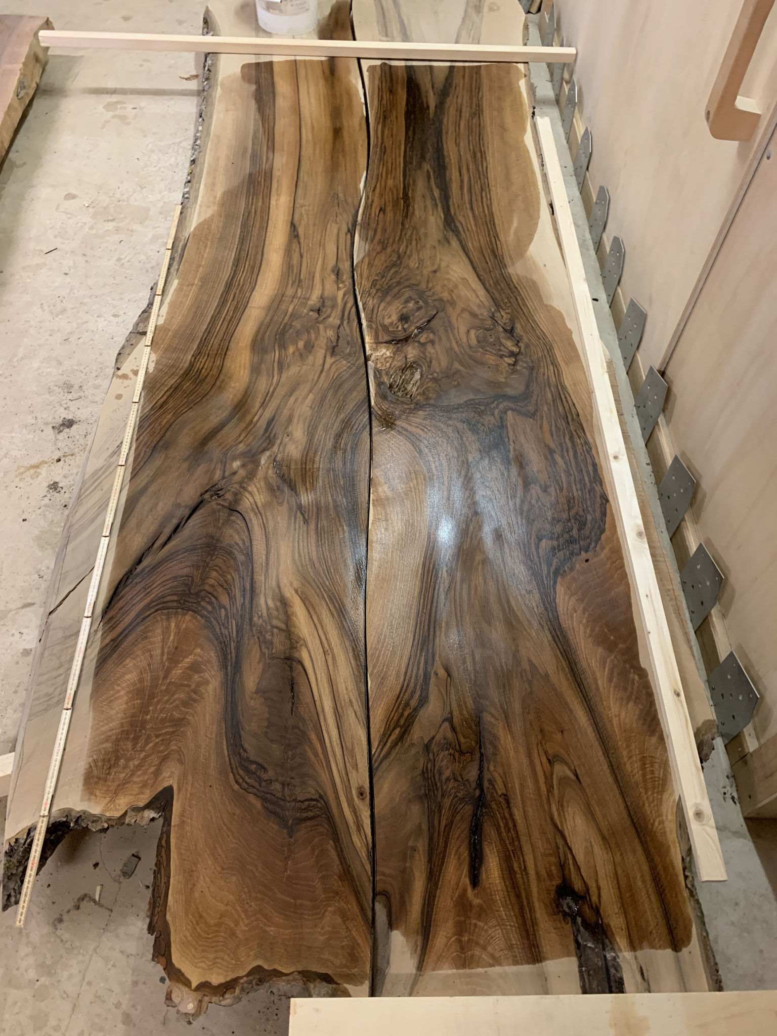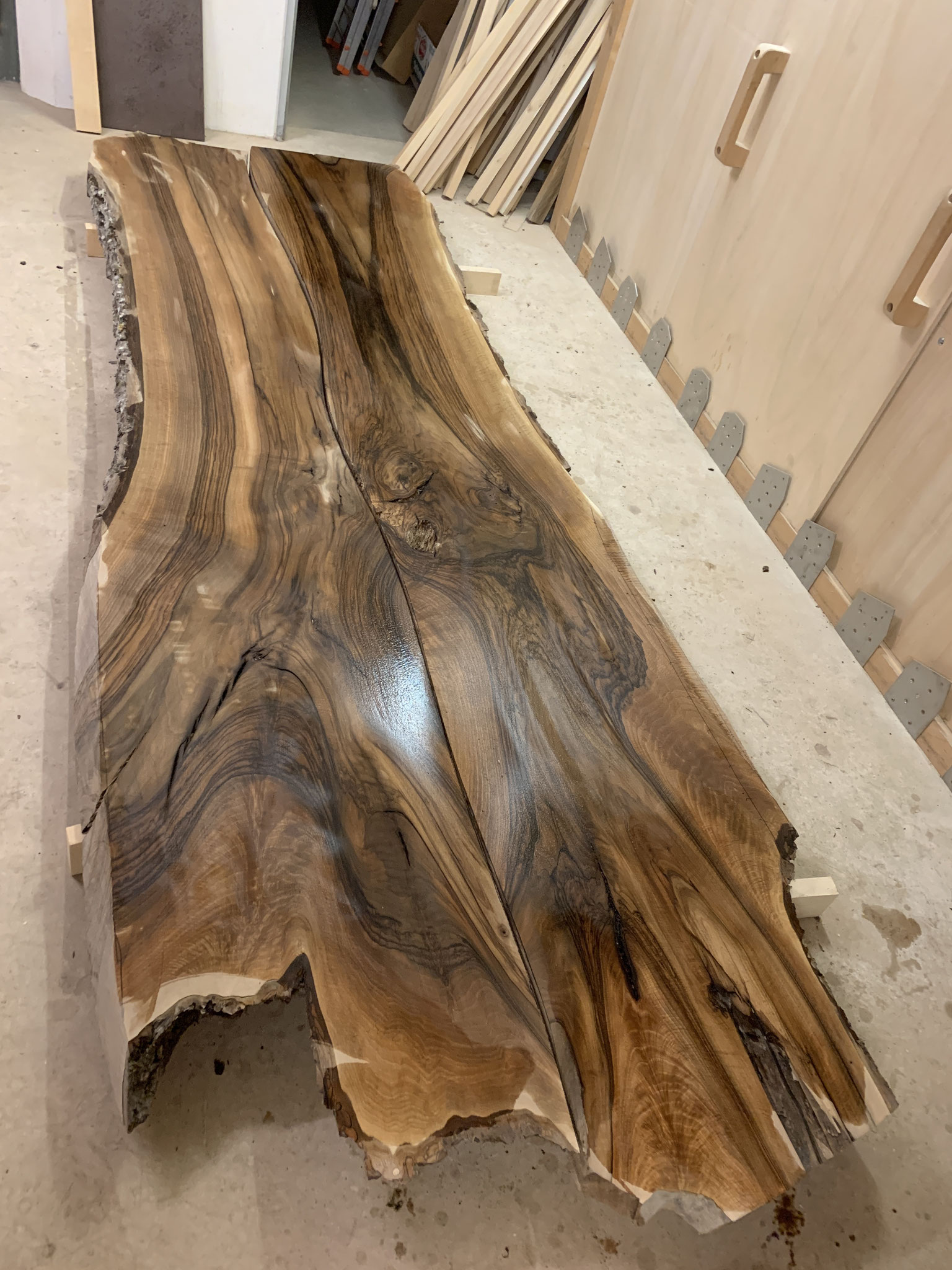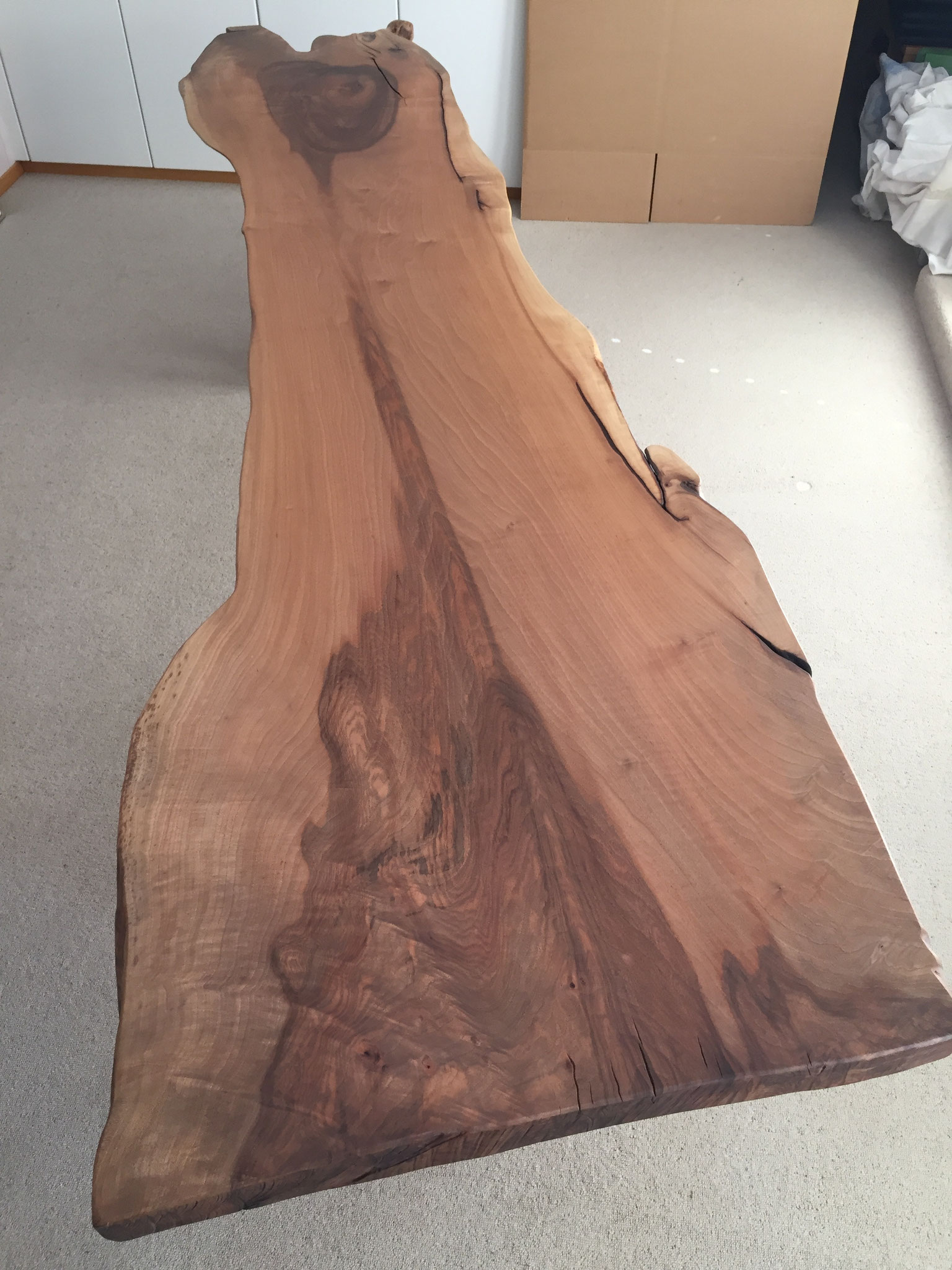 Nussbaumbrett im Rohzustand. Momentan nur gehobelt und grob geschliffen.