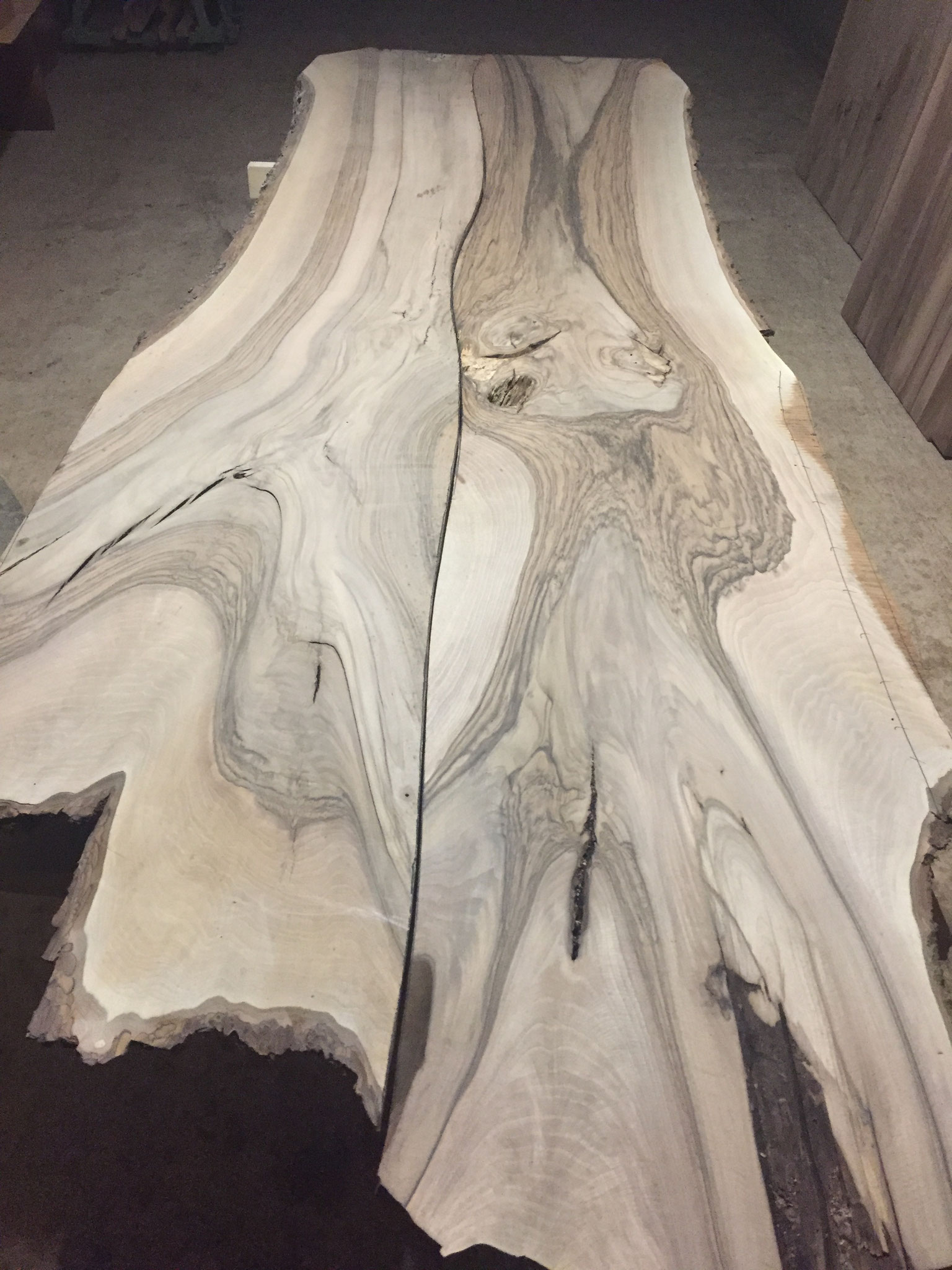 Fantastische Nussbaum-Platte. Mit Riss von Blitzschlag. Nr. 1078. Länge 265cm.prov. Verkauft