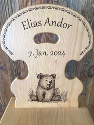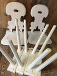 Versand zerlegt im Bausatz. Sitzhöhe: 32cm. Gesamthöhe : 52cm. Ideal zum beschriften, wie: malen, brandmalen, kerbschnitzen, schnitzen.