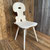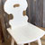 Stabelle, Stuhl, Lehne Linde roh, Sitz Ahorn, Beine Esche weiss, Masse: Sitzhöhe 45cm, Sitzbreite vorne 42,5cm, Sitztiefe gesamt: 41,6cm, Sitztiefe bis Lehne: 36,5, Gesamttiefe inkl. Hinterbein: 45cm. Gesamthöhe, 89cm