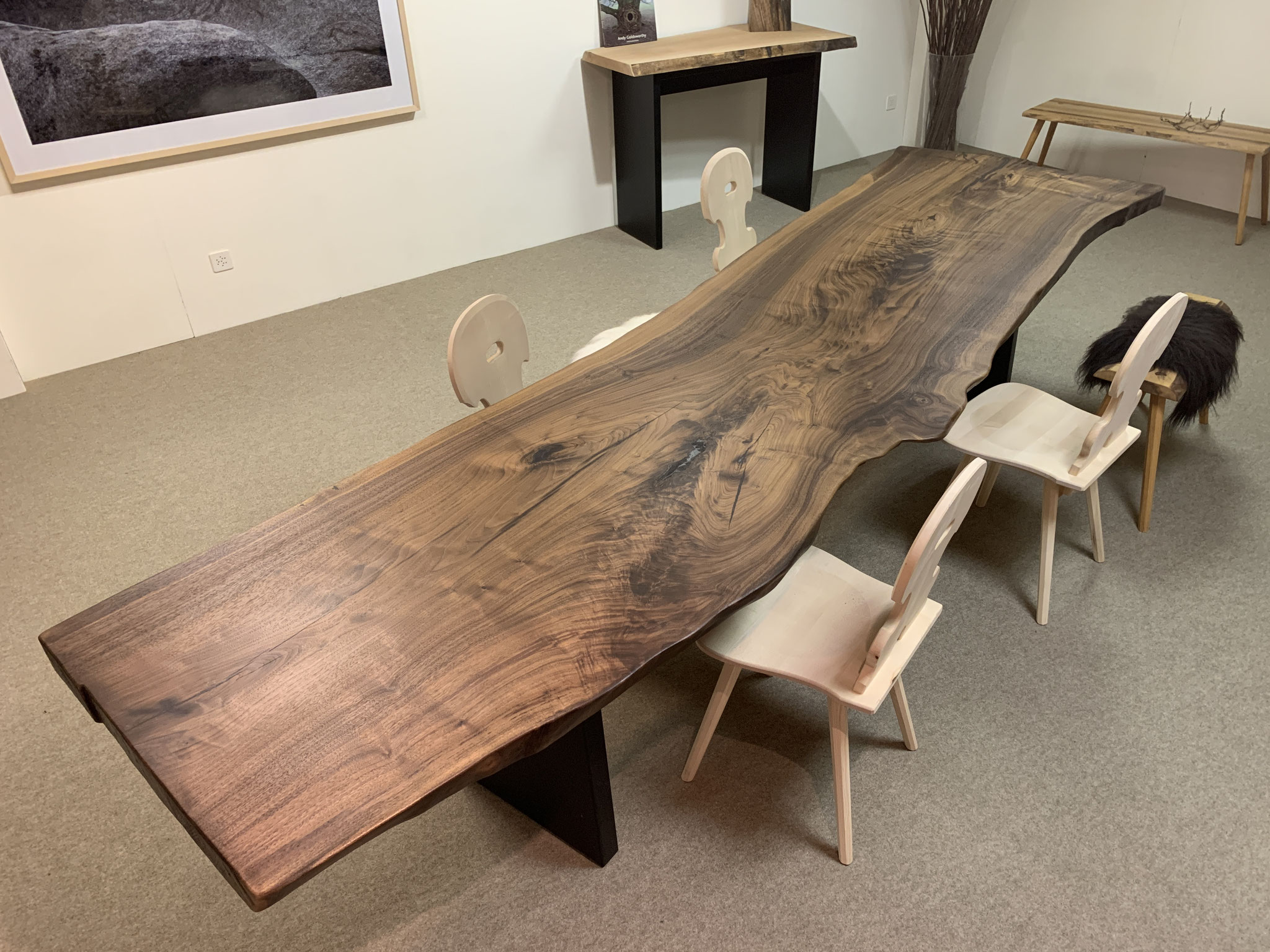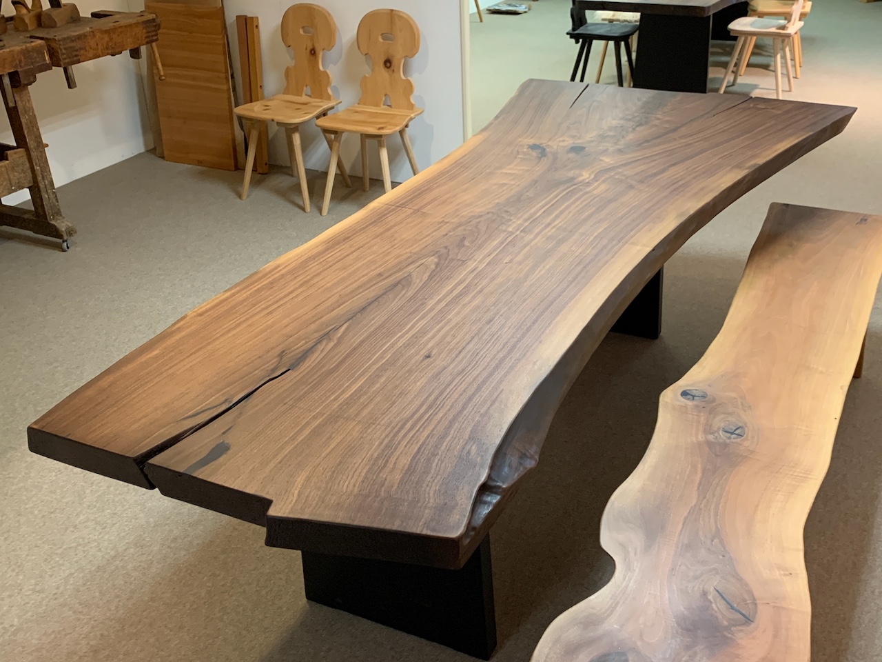 Tisch Edelkastanie Tessin. Natur gölt. Fuss schwarz. In unserer Ausstellung präsentiert!