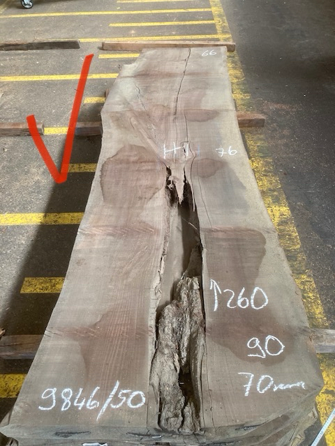 Nussbaumbrett ungedämpft mit Rinde. Momentan im Rohzustand. Trocken!